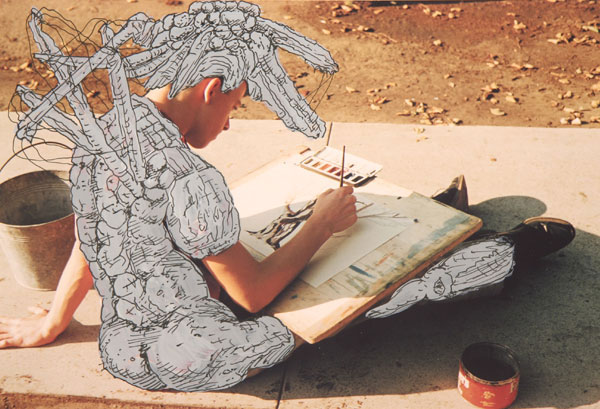 1959-1960-2009, Ink and Acrylic on Color Photograph, 8 x 12 inches