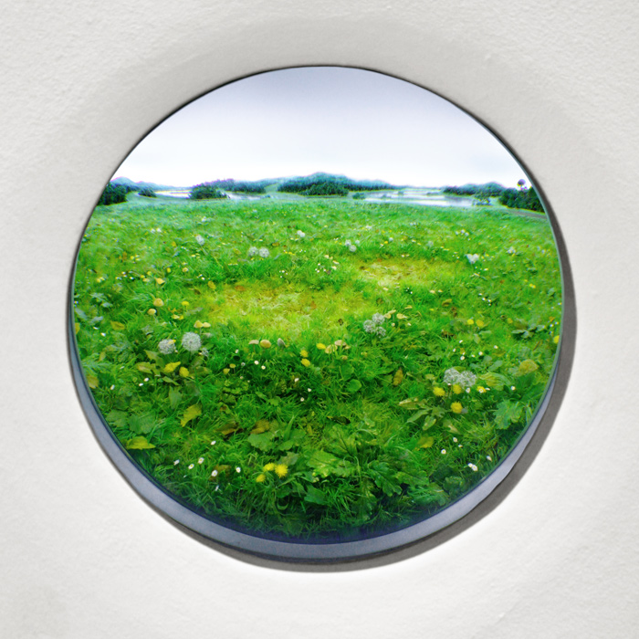 “Double Fairy Ring with Dandelions,” 2012, Styrene, acrylic, cast neoprene, paper, hair,