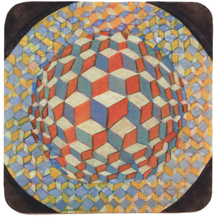 “Star Shell,” 2016, Ink and wood stain on paper, 7.5 x 7.5 inches