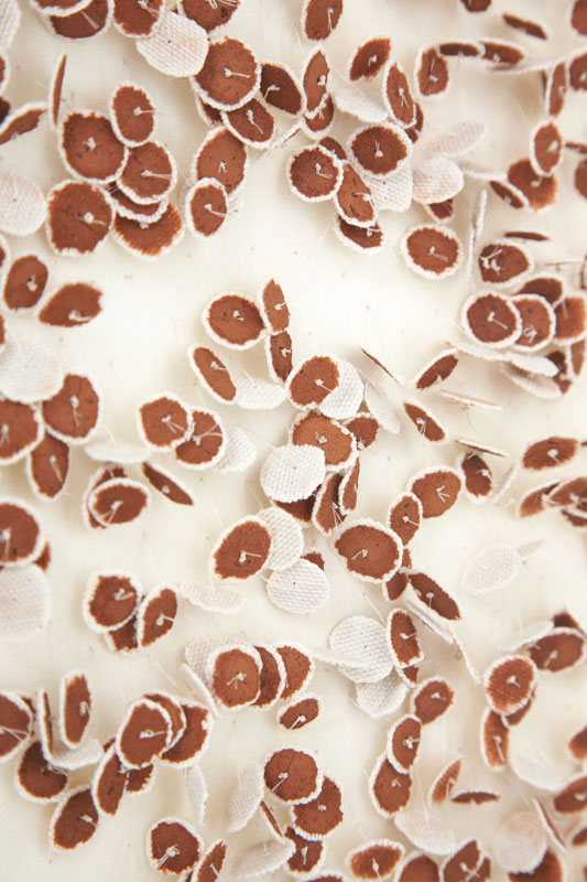 Detail: “Untitled,” Diptych, 2009, Earth from Siena, Italy on muslin on washi with silk thread, 25 x 20 x 1/2 inches each panel (25 x 41.75 inches overall) Photograph by Eric Lubrick
