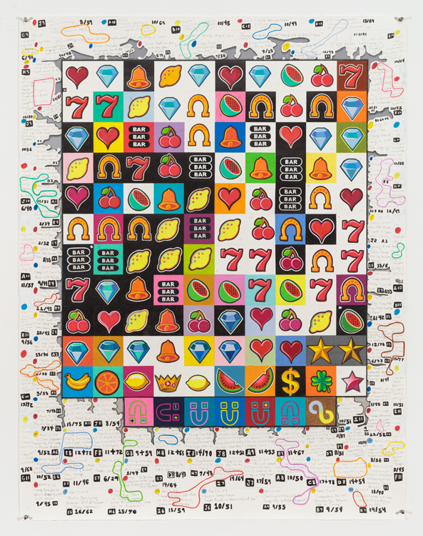 “Slot Machine Politics,” Graphite and colored pencil on paper, 49.7 x 38.25 inches