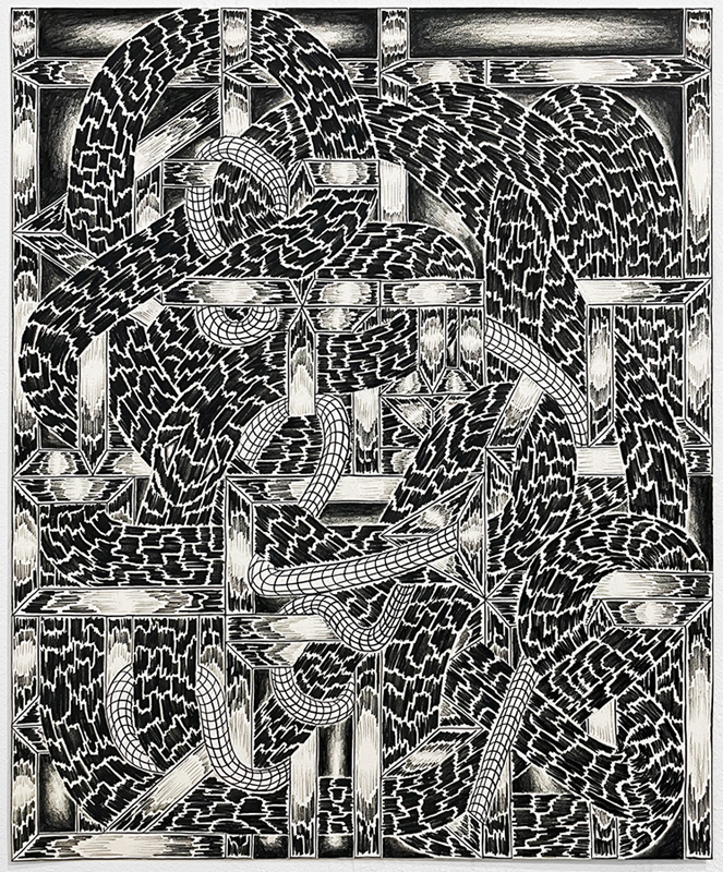 “Repeat The Lie, Make It True,” 2021, Colored pencil on paper, 17 x 14 inches