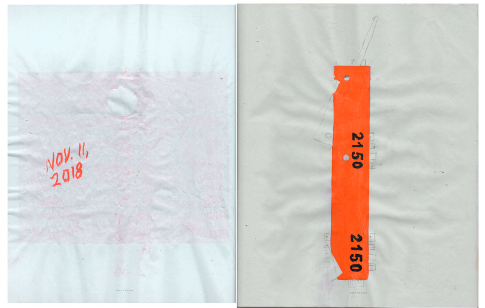 Untitled (Book of Tickets), 2018, Ink and gouache on paper, Smythson notebook, 10.25 x 8.5 inches closed