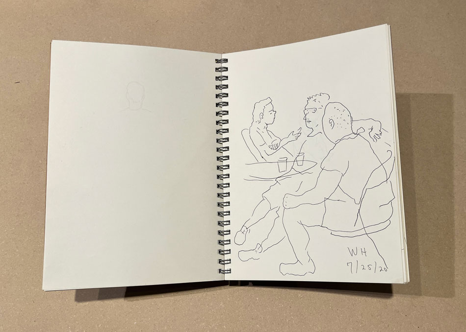 “Muji Sketchbook,” 3/26/2026, Ink on paper, 5 x 8 inches closed