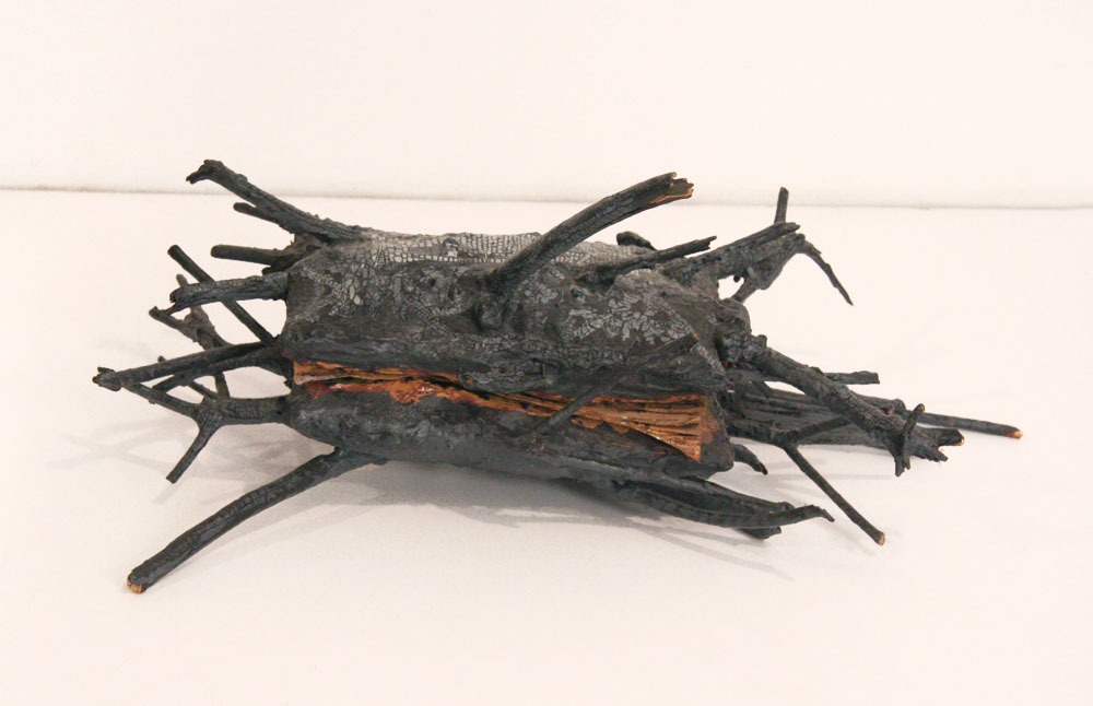 Untitled (Book), Mixed media (paper, acrylic paint, wood, twine), approx. 9 x 21 x 16 inches. Private collection