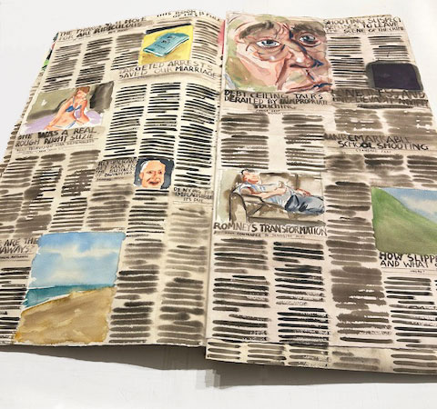 “New York Times (Newspaper),” 2010, Watercolor on paper, 47 x 27 inches closed