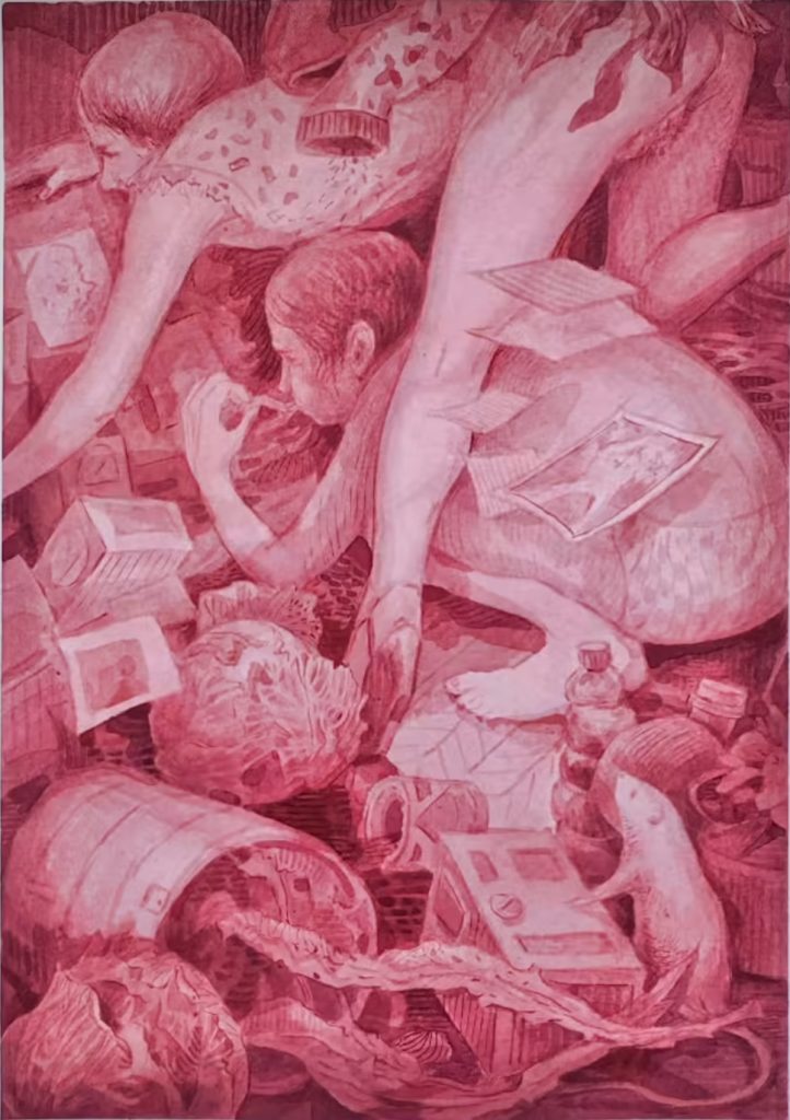 “Cargo Trunk,” 2025, Gouache and cold wax on paper, 7 x 5 inches