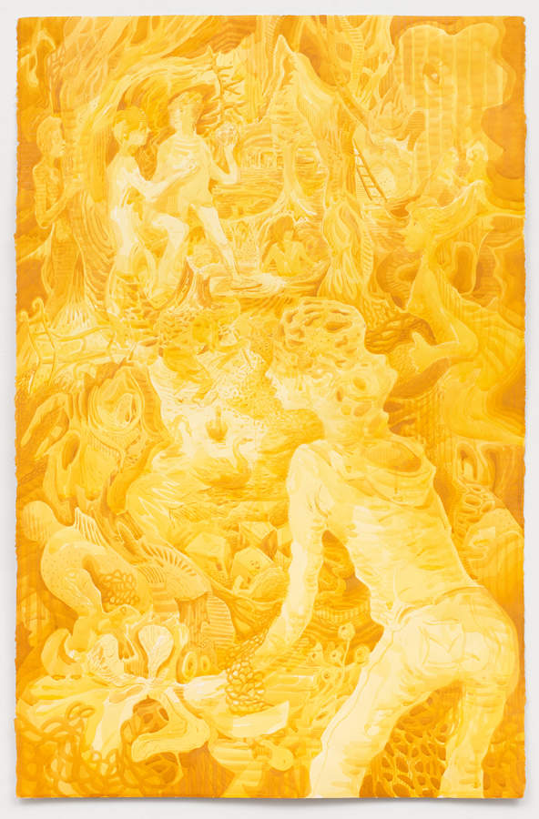“Yellow Faraway,” 2023, Watercolor, gouache, graphite on paper, 40 x 25.75 inches